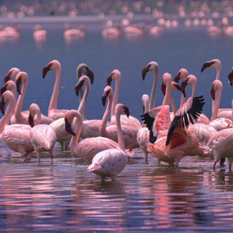 Full day in Baringo with a visit to lake Bogoria . The lake is host to thousands of shocking – pink flamingoes as well as other water birds such the pelican and Gerbe. After picnic lunch visit the hot steaming geysers found in the area. These are spectacular displays of superheated water sprays that shot out of natural underground rocks. Dinner and overnight at Lake Baringo club